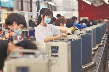 初夏时节,安徽省淮北市濉溪经济开发区内的空调企业生产车间一派忙碌景象,企业开足马力赶制订单。近年来,该开发区发挥产业配套优势,引进空调生产企业入驻,不断优化服务,帮助企业开拓国内外市场,促进经济高质量发展。新华社发(万善朝 摄)