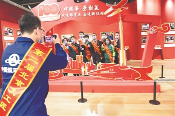 当天,30名“北京大工匠”受邀参观了“中国梦·劳动美——永远跟党走 奋进新征程”百名劳模图片展。图为部分“北京大工匠”在活动现场合影。本报记者 赖志凯 本报通讯员 孙妍 摄