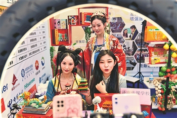 5月20日,在山东国际会展中心,济南传媒学校学生展示“直播带货”。