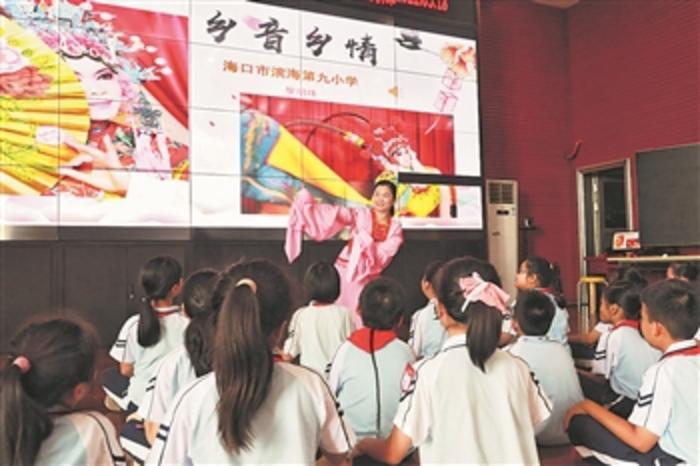 本报讯(记者赖书闻)“为人子方少时,亲师友习礼仪,融四岁能让梨,弟子长宜先知……”近日,海南省海口市滨海第九小学三、四年级的39个学生跟着老师唱起了海南琼剧。