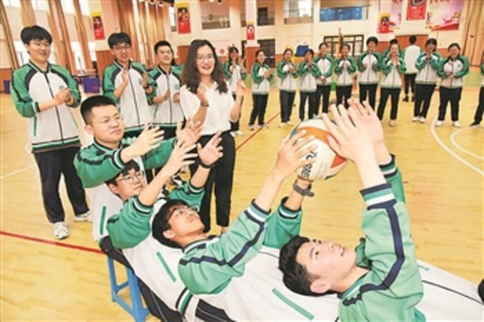 5月23日,山东青岛通济实验学校高三学生在进行“躺椅传球”游戏。2021年高考临近,该校开展系列减压活动,帮助学生释放身心压力,轻松备考。 新华社记者 李紫恒 摄