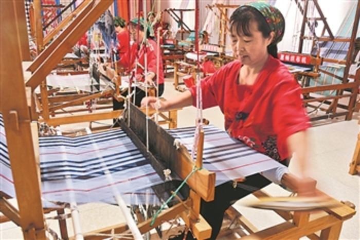 5月24日,惠畅棉花专业合作社女工在传统织布机上织布。近年来,山西运城永济市东开张村依托当地资源优势,成立合作社,打造传统土布品牌。2020年12月,惠畅土布制作技艺被列入国家级非物质文化遗产名录。 新华社记者 马毅敏 摄
