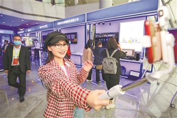 当日,2021中国国际大数据产业博览会毕节分会场开始接受参观,市民们纷纷走进会场,“抢鲜”体验大数据魅力。 陈曦 摄/人民图片