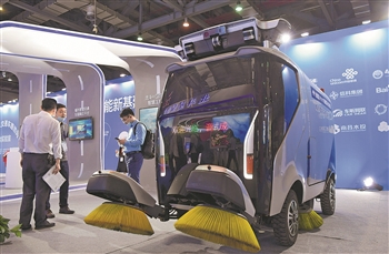 5月27日在博览会上拍摄的智能无人驾驶环卫车。