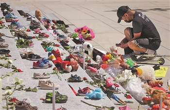 当日,温哥华举行活动,悼念不列颠哥伦比亚省坎卢普斯市一所原住民寄宿学校的死者。据加拿大媒体28日报道,215具原住民儿童遗骸在“坎卢普斯印第安寄宿学校”旧址上被发现。从19世纪90年代到20世纪90年代,加拿大估计有15万名原住民儿童被强迫离开父母,进入寄宿学校学习“文化和文明”,很多儿童遭到残酷虐待。