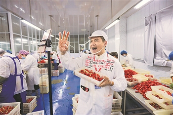 连日来,江苏省连云港市赣榆区墩尚镇双槐村利用休渔期时间差,以及小龙虾大批量上市的契机,引导电商园企业筹集资金购进大量小龙虾原料,加工成龙虾尾,通过线下销售与线上电商平台双线并行的模式,精准链接用户,推动村级经济提质增效。徐诚 摄/人民图片