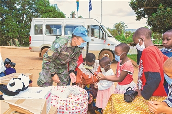 “六一”国际儿童节当天,中国第24批赴刚果(金)维和医疗分队来到位于东部城市布卡武的SOS儿童村,看望慰问当地儿童,为他们带去爱心物资,进行医疗救助。