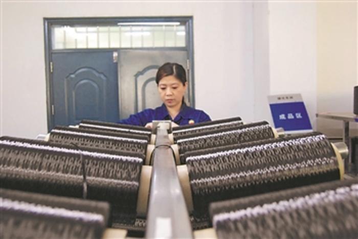 图为西部质检二车间员工通过力学缠样检测样品性能。
