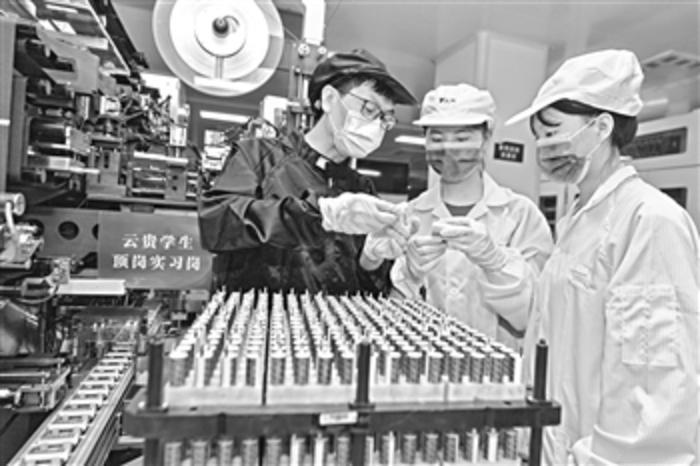 6月3日,学生在企业师傅的指导下上岗作业。当天,浙江长兴职教中心首届长兴——云贵协作扶贫定向就业班的59名电气、旅游等专业学生奔赴当地14家企业顶岗实习。经过两年精准订单式培养,实习期满后,他们将直接留在企业工作。 本报通讯员 谭云俸 摄