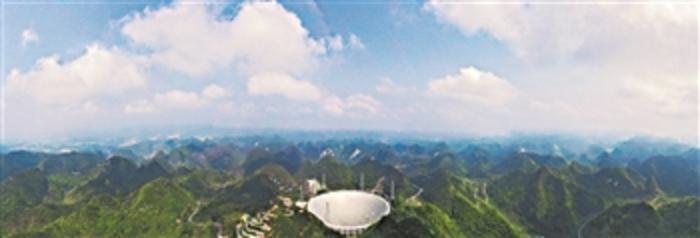 在贵州省平塘县,“中国天眼”在群山中仰望星空,探求宇宙奥秘。 新华社记者 欧东衢 摄