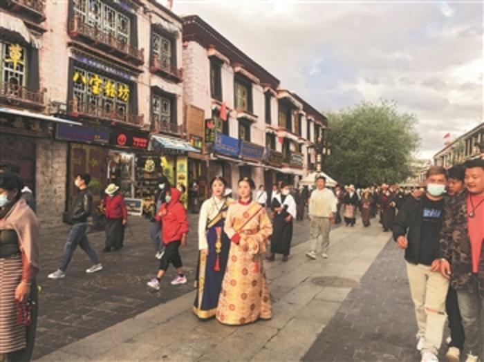 图⑤:拉萨城区的八廓街吸引了来自全国各地的游客。本报记者 徐福平 摄
