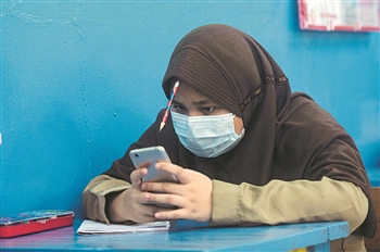 6月9日,印度尼西亚雅加达一所小学的学生戴着口罩参加期末考试。在确保防疫要求的前提下,雅加达的部分学校正在逐步恢复线下教学活动。 新华社发(阿贡 摄)