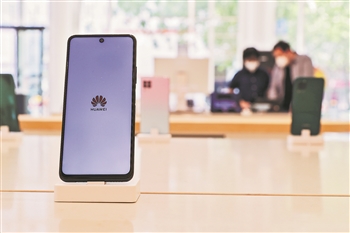 中国华为公司德国首家旗舰店9日在柏林开业,这是华为在欧洲地区营业的第五家旗舰店。图为6月8日在德国首都柏林的华为旗舰店拍摄的手机。