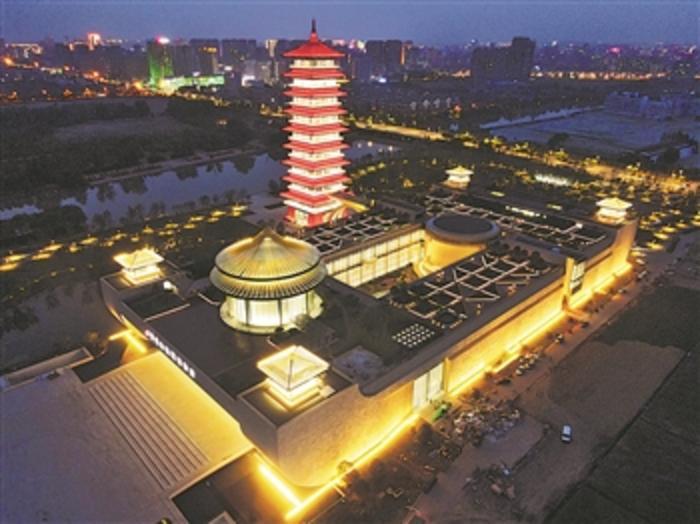 6月8日,位于江苏省扬州市运河三湾生态文化公园内的中国大运河博物馆开始进行灯光调试。中国大运河博物馆总面积约7.9万平方米,内设11个专题展览,即将于6月16日正式开馆。 新华社发(孟德龙 摄)