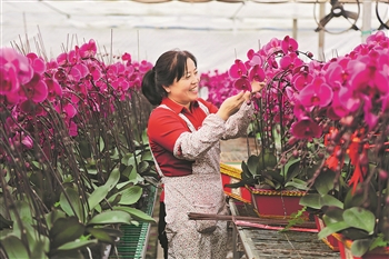 图③:甘肃省临洮县三易花卉基地工作人员在整理蝴蝶兰。近年来,临洮县花卉产业蓬勃兴起,蝴蝶兰、百合花等远销全国各地。 新华社发