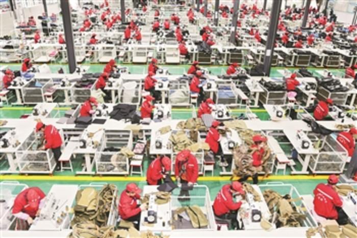 图④:甘肃省临夏回族自治州和政县一扶贫车间里,工人在包袋生产线上作业。近年来,当地依托东西部扶贫协作平台带动贫困户就近就业,助力脱贫增收。新华社发