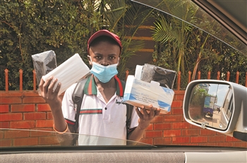 6月12日,一名儿童在乌干达坎帕拉街头贩卖口罩。新华社发(尼古拉斯·卡乔巴 摄)