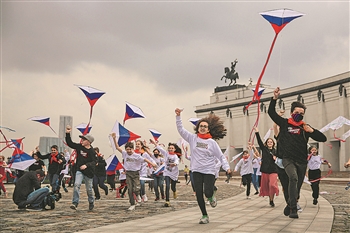 6月12日,在俄罗斯首都莫斯科,孩子们放飞风筝,庆祝俄罗斯的国庆日“俄罗斯日”。新华社发(叶甫盖尼·西尼岑 摄)