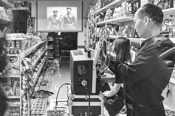 吉林省四平市伊通满族自治县有一家不起眼的小超市,54岁的超市老板黄耀辉经常撇下生意,溜到二楼与他的几十部老电影胶片和放映设备为伴。他常在小超市里挂起银幕,打开放映机,开启音响,富有年代感的画面和声音吸引过往市民驻足观看,唤起人们对那个流金岁月的珍贵记忆。他说:“老式电影放映的方式也许会被时代和科技淘汰,但电影里的经典故事会一直传承下去。”