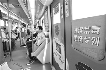 武汉市禁毒办联合武汉地铁集团,在武汉“里程最长、站点最多、客流最大”的地铁2号线开展“禁毒主题专列”禁毒宣传。地铁禁毒主题专列共有6节车厢,以诙谐有趣、通俗易懂和群众喜闻乐见的方式,向广大市民和旅客宣传毒品危害,传播“健康无毒、绿色出行”的禁毒理念。