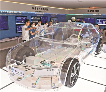 6月17日,在未来网络创新展上,参展人员介绍确定性网络在无人驾驶中的应用技术。