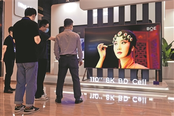 6月17日,观众在京东方110英寸、8K显示屏前驻足。