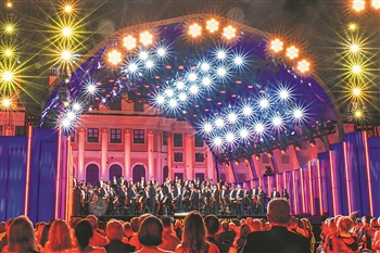 2021年奥地利维也纳夏夜露天音乐会18日晚在世界文化遗产美泉宫上演。新华社记者 郭晨 摄