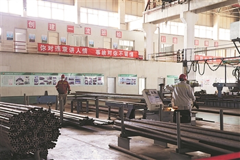 6月15日,冀东油田机械公司容器制造分公司职工田艺和郑海涛正在有条不紊地准备当天生产所需材料。该公司有着23年容器类产品制造历史,“你对违章讲人情,事故对你不留情”这则警示标语始终悬挂在车间最醒目的位置,时刻警醒员工安全生产无小事。张单 摄