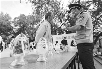 “6·26”国际禁毒日来临之际,各地广泛开展禁毒宣传活动。图为6月22日,乌鲁木齐市公安局水磨沟区分局禁毒大队在该市红山公园开展禁毒宣传活动。