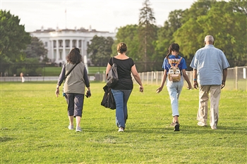 6月22日,游客在美国首都华盛顿的白宫附近游览。