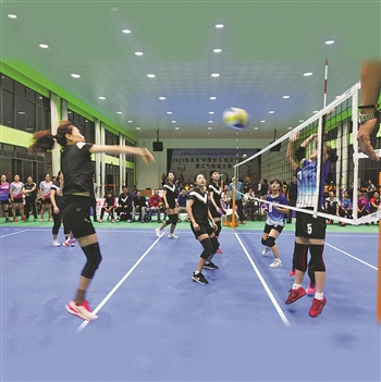 ②职工们在贵溪市工人文化宫开展激烈的排球比赛。