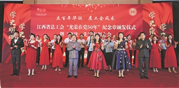 6月29日,江西省总工会举行“光荣在党50年”纪念章颁发仪式暨“两优一先”表彰大会。