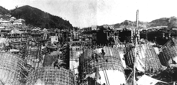 图①:20世纪50年代施工中的佛子岭水库。水利部淮河水利委员会供图