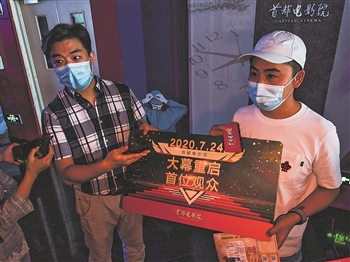 图⑤:2020年7月24日,疫情过后重新开放的首都电影院迎来首位购票观众。