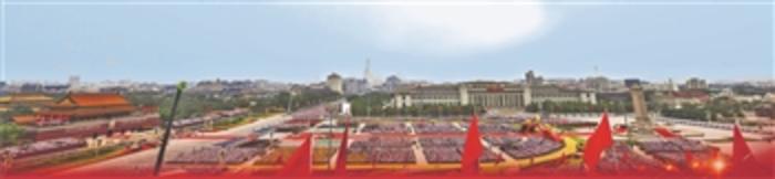 从空中俯瞰,天安门广场“巨轮启航”造型宏伟壮观,正乘风破浪、扬帆奋进,驶向中华民族伟大复兴的光辉未来。