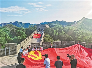 首都职工绣制十面巨幅党旗庆祝中国共产党百年华诞。本报记者 赖志凯 摄