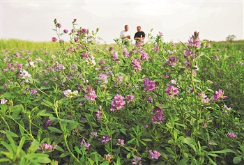 7月4日,在黄骅市一家农场拍摄的抗旱耐旱作物苜蓿。