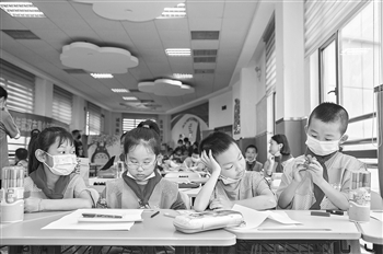 7月5日,孩子们在武汉市秦园路社区托管室上课。当日,2021年武汉市青少年暑假社区托管项目启动,首批114间市级托管室正式对外开放。据悉,为破解青少年暑期“托管难”,共青团武汉市委员会面向武汉学籍小学生开设200多间托管室,提供免费公益社区托管服务。新华社发(伍志尊 摄)