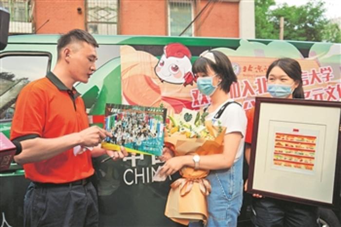 7月7日,北京邮政迎来2021年该市第一封普招高考录取通知书的投递任务。