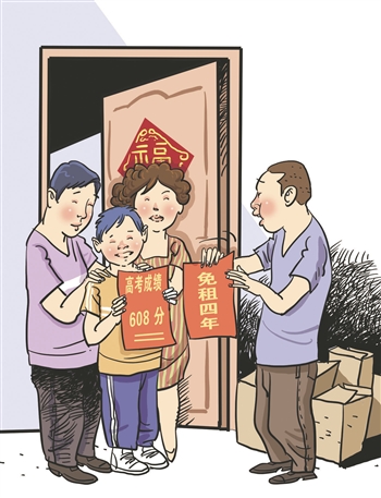 生活不易,租客平日为生活打拼的点点滴滴,房东看在眼里。免租善举,有对孩子好成绩的褒奖成分,也有对孩子父母多年辛劳的敬佩和体谅。此举传递出的善意、人与人之间的关怀,包括对“知识改变命运”的肯定,都分量满满。从出租车免费送考,餐厅、酒店等为考生免费提供临时休憩空间,到旅游景区出台考生暑期免票游览政策,在更多地方和场景中,服务考生的民间自发行动越来越多。我们为这真金白银的诚意点赞,也希望这些善举汇聚起来的正能量,让我们的社会更温暖、更文明。