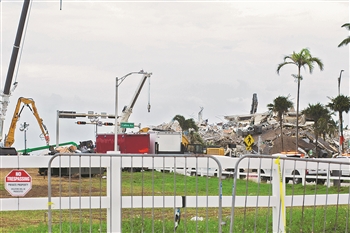 上图:这是7月6日拍摄的美国佛罗里达州迈阿密-戴德县的住宅楼坍塌事故现场。