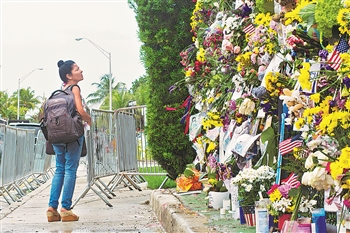 下图:这是7月6日在美国佛罗里达州迈阿密-戴德县坍塌的住宅楼附近拍摄的悼念墙。