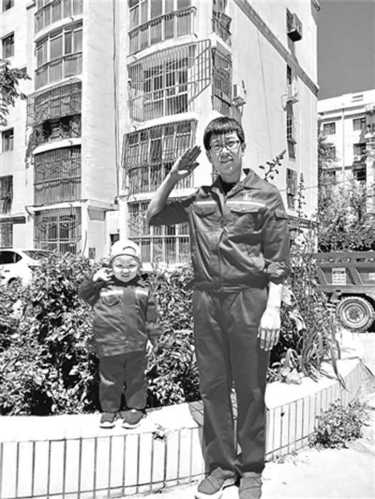 一次休假时,杨小腾穿着红工装回到家中,两岁的儿子看着俊朗帅气的红衣爸爸,粘在爸爸怀里不出来。奶奶看见这亲昵的父子俩,高兴得直拍手,第二天就把杨小腾的旧工衣改成了一套迷你红工衣童装。穿着“新工装”的杨曦泽神气地走来走去,开心得跟过节似的,天天都要和爸爸穿同款红衣,一起玩耍。
