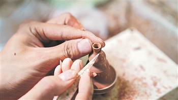 7月15日,陈帅在工作室进行利胚工序。今年25岁的陈帅是江西省景德镇市的一名陶瓷艺人。和传统的景德镇陶瓷艺术作品不同,陈帅热衷于创作拇指大小的袖珍瓷。