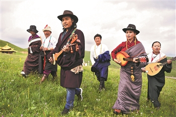 盛夏季节,在海拔3000多米的甘肃省甘南藏族自治州玛曲草原上,格萨尔弹唱艺人们背着乐器,相约草原深处,用弹唱的方式诉说着格萨尔王的英雄故事,动听的格萨尔弹唱也成为夏日里草原上的“流行乐”。