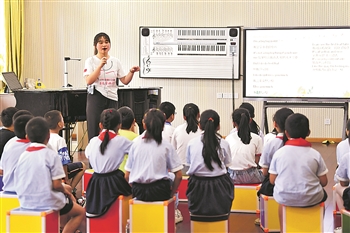 暑期伊始,安徽省合肥市肥西县花岗镇新时代文明实践所联合安徽医科大学第二临床医学院开展“同心筑梦”暑期志愿服务活动。10多名大学生志愿者来到花岗学区中心学校,为乡村留守儿童开展音乐、美术、体育等方面的课程和互动游戏,丰富孩子们的暑期生活。新华社记者 刘军喜 摄