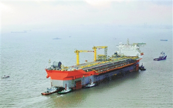 该装置最大原油日处理能力25万桶,储油能力200万桶,最大排水量46万吨,是业内已交付使用的同类项目中最大吨位、最大储油量的新型海上浮式生产储卸油装置,为名副其实的“海上巨无霸”。它可在深水区域等多种海域进行油气开采、储存及处理一条龙作业,具备全球领先水平,大幅降低业主运营成本。许丛军 摄/人民视觉