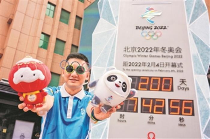 7月19日,曾经服务于北京奥运会五棵松棒球场的志愿者张文全,特意赶在北京冬奥会倒计时200天的日子,穿着2008年奥运会志愿者工作服,到王府井大街北京冬奥会倒计时牌前留影。张文全说,今年最大的愿望就是成为北京2022年冬奥会的志愿者。史春阳 摄/中新社