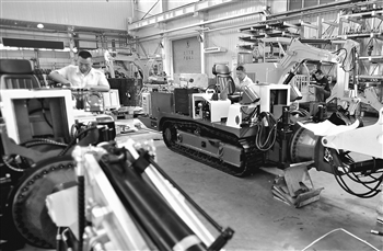 7月16日,河北省张家口宣化华泰矿冶机械有限公司员工在钻机生产线上工作。近年来,河北省张家口市宣化区整合老工业区技术、人才优势,不断提升装备制造企业创新能力和自主研发水平,区内形成90多家装备制造龙头企业、300多家配套加工企业的高端装备制造业生产出口集群。目前,该区工程车辆、钻探机械等装备机械整车产品销往60多个国家和地区,年产值300多亿元。 陈晓东 摄/人民图片