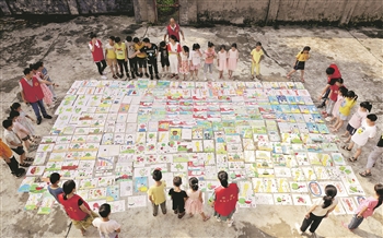 7月21日,四川省华蓥市明月镇竹河村儿童画院的美术教师在点评孩子们的绘画作品。